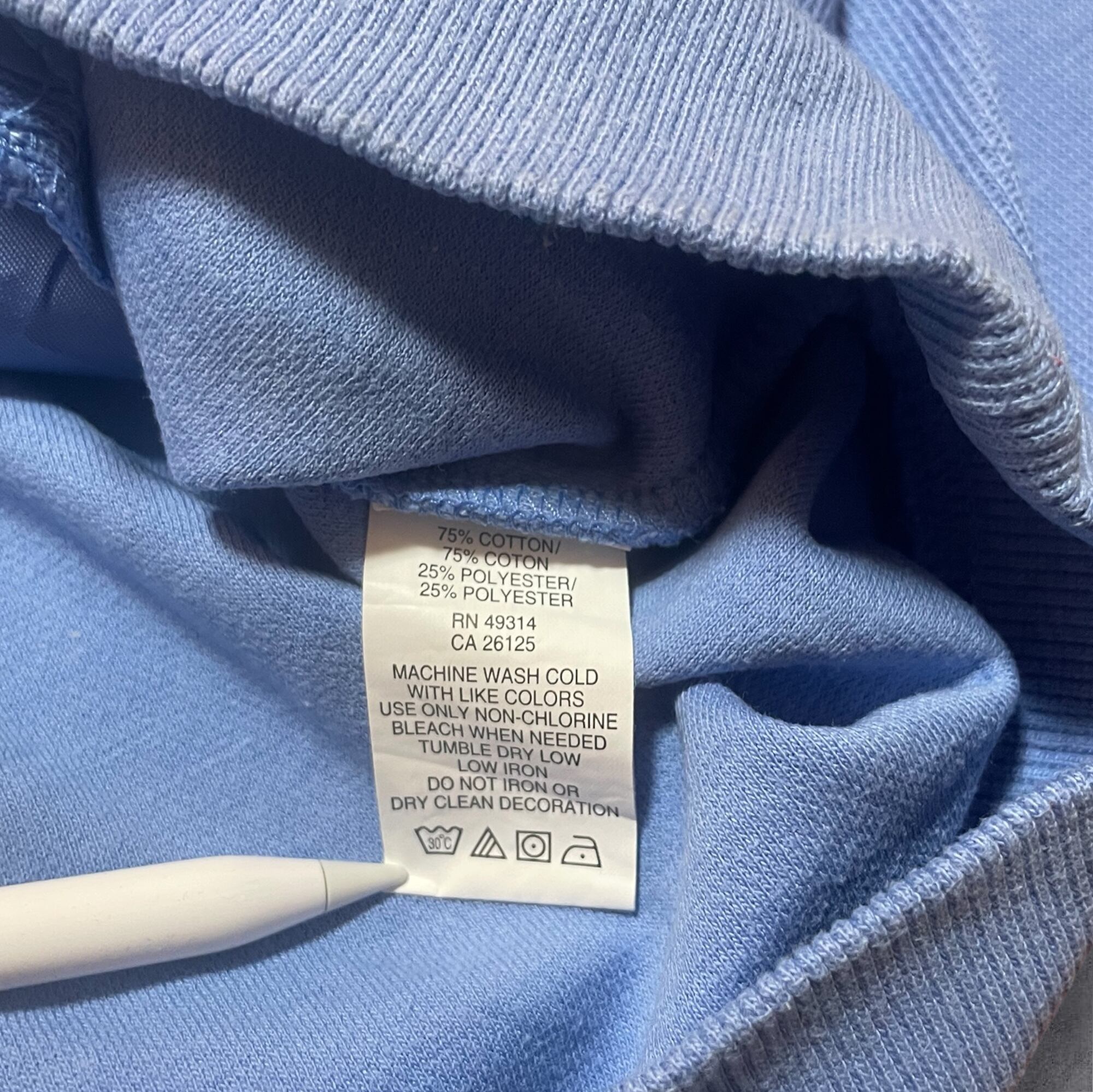 コットン75%、ポリエステル25%